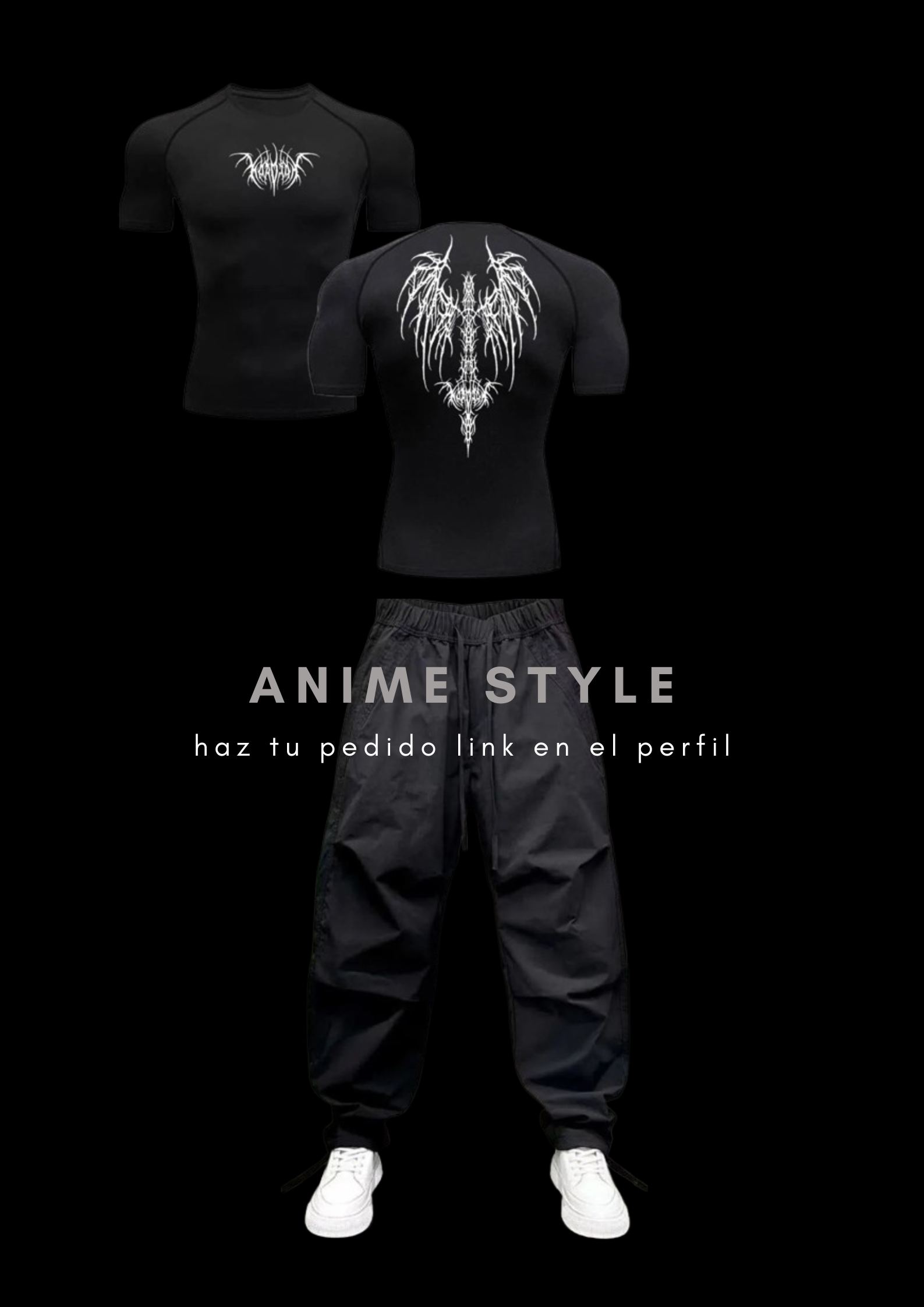 Nuestro conjunto ANIME STYLE DARKNIGHT te transporta al corazón de la cultura anime, combinando estilo y comodidad para tus entrenamientos. La camiseta de compresión y los joggers crean un look único que te hará destacar, mientras que los tejidos de alta calidad te brindan la libertad de movimiento que necesitas.