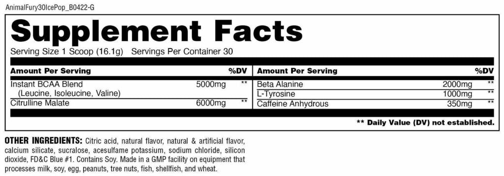 ✍️ Uso recomendado: Mezcla una medida de ANIMAL FURY con agua y consúmelo 30 minutos antes de tu entrenamiento. No excedas más de una porción al día.